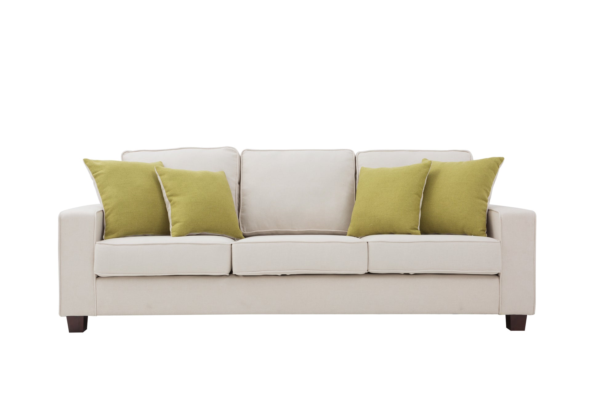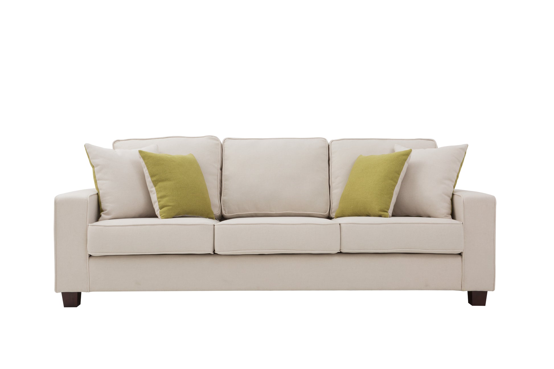 Comes with four reversible toss pillows (beige and green).