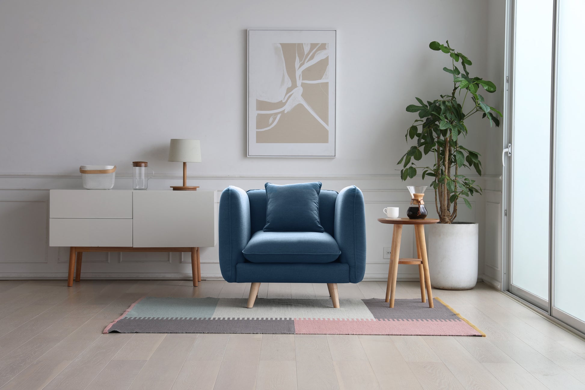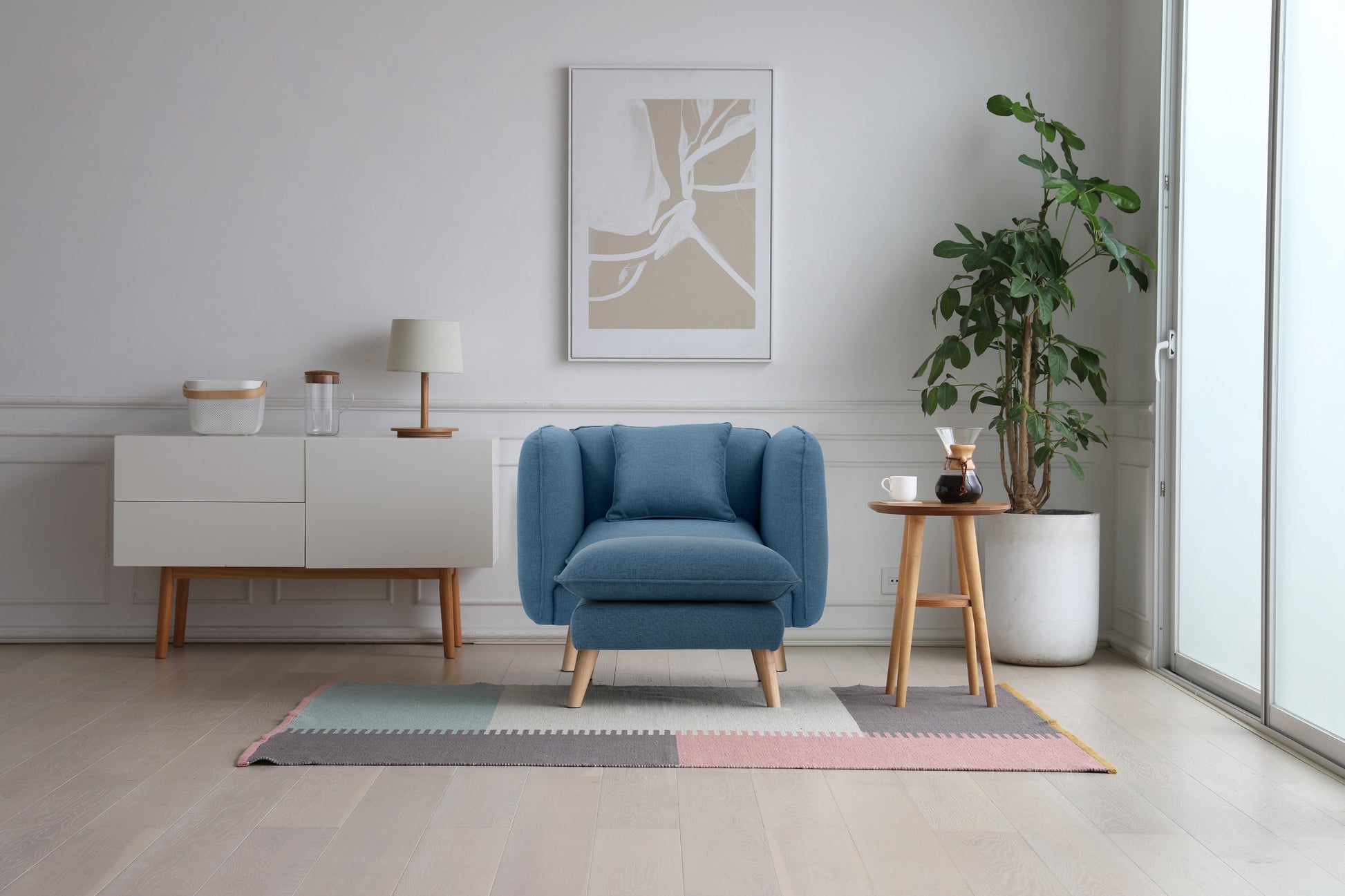 We work with our team of designers in Japan to create minimalist affordable sofas. Our Japanese designed sofa collection is made mainly from solid eucalyptus wood. The filling is high density foam, making the products more on the firmer side. This is to ensure the sofa keeps shape over time and helps support a healthy posture.Â