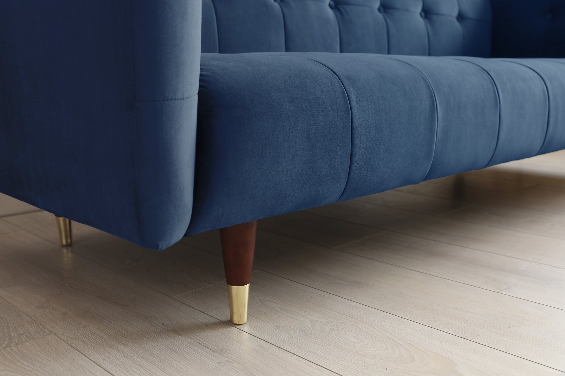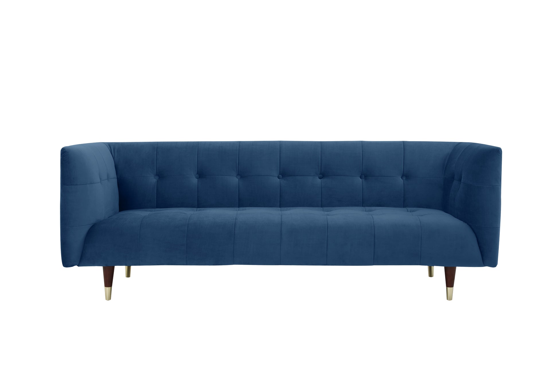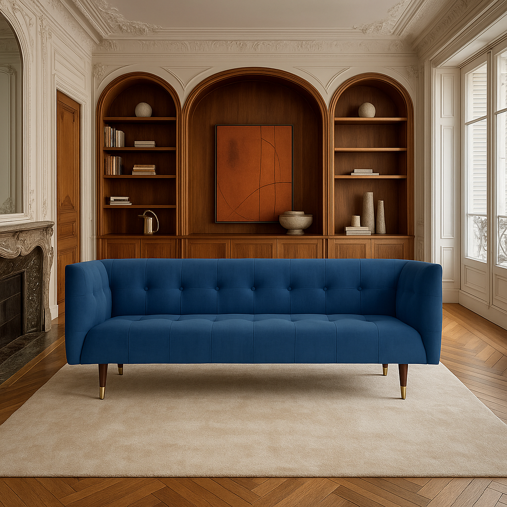 This elegant 3 seater velvet sofa captures the eyes with its unique soft velvet and effortless shape. The gold accents on the solid wood legs add a sweet nostalgic aura.