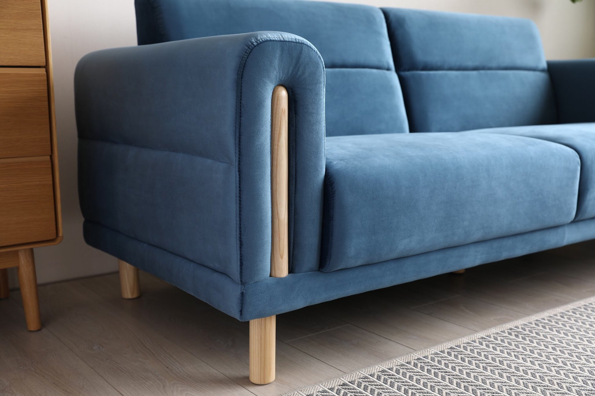 We work with our team of designers in Japan to create minimalist affordable sofas. Our Japanese designed sofa collection is made mainly from solid eucalyptus wood. The filling is high density foam, making the products more on the firmer side. This is to ensure the sofa keeps shape over time and helps support a healthy posture.