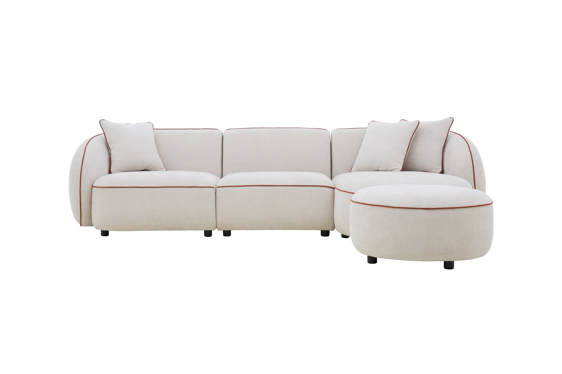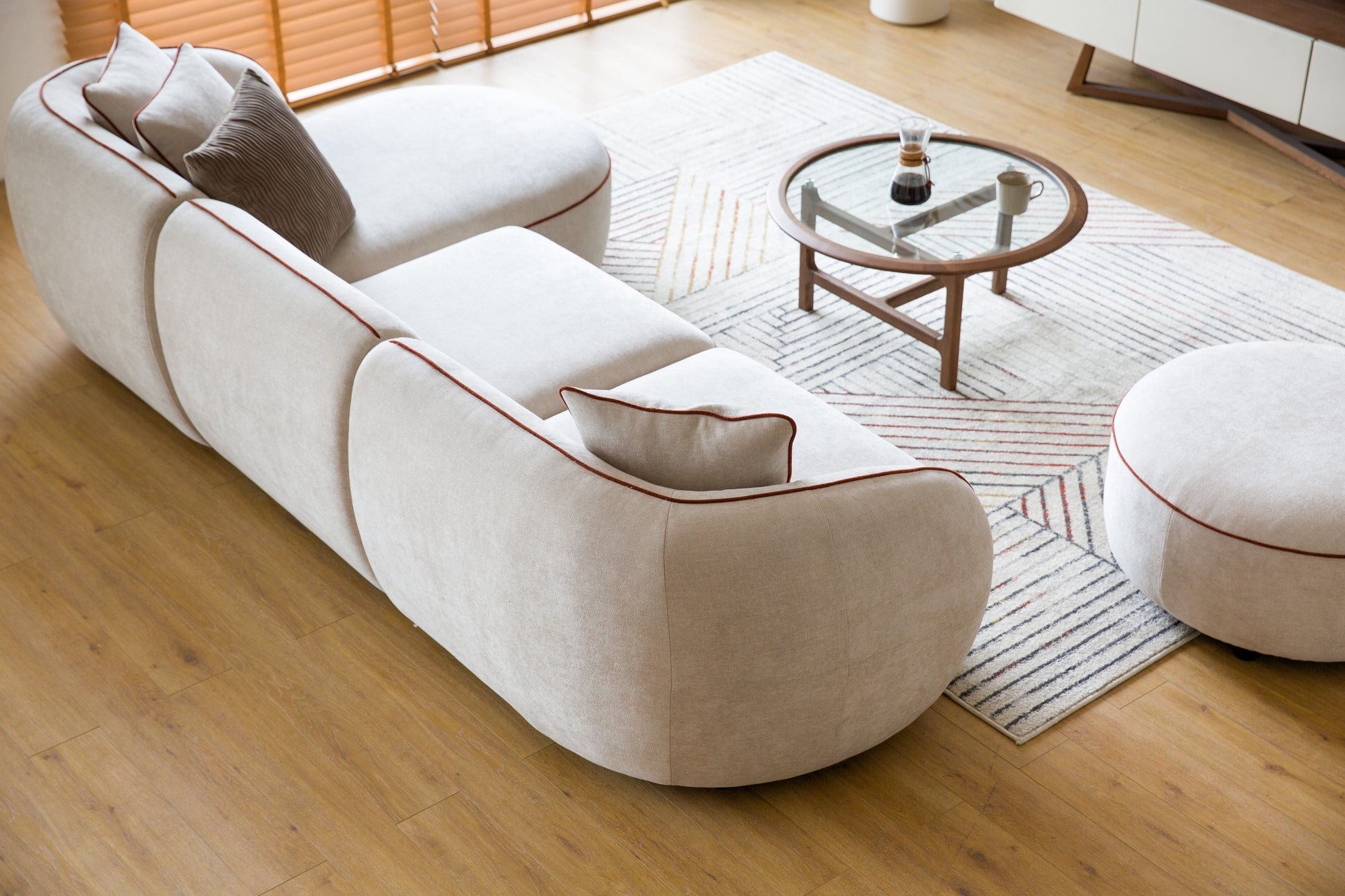 Bring serene sophistication into your living space with this beautifully crafted sectional and matching ottoman. Designed with a distinctly Japanese minimalist aesthetic and its soft, rounded silhouette create an inviting sense of calm.